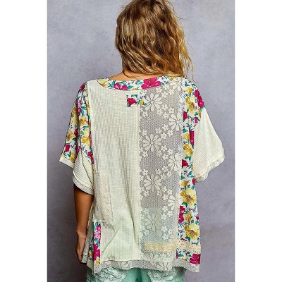 I am a Fashion Junky POL Lace Round Neck Short Sleeve Floral Pattern Top with Patch Detail