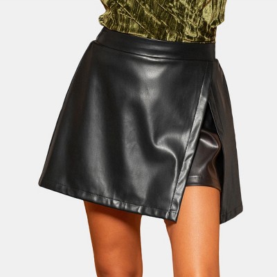 INSPIRE CHIC Women's Faux Suede Faux Leather Waist A-Line Mini Skirts