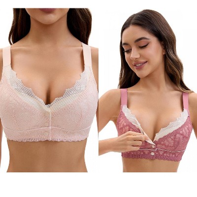 INSPIRE CHIC Nursing Bra for Women's Push Up Wirefree Front Closure Comfortable Maternity Bralette 2 Packs