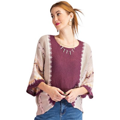 Slickblue Women's Oversized Sweater with Multi-Color Thread, Boat Neck and 3/4 Sleeves, Faded Plum, Size S-L