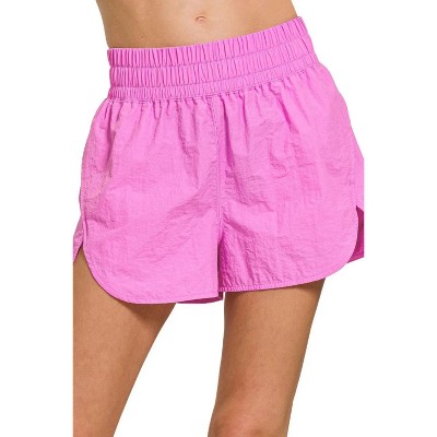 Zenana Windbreaker Smocked Waistband Running Shorts