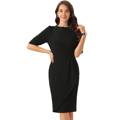 Allegra K Women's Tweed Pencil Crew Neck Cap Sleeve Vintage Bodycon Midi Dress