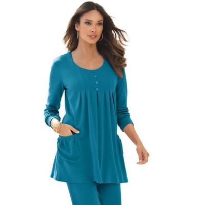 Roaman's Plus Size Two Pocket Long Sleeve Soft Knit Swing Tunic