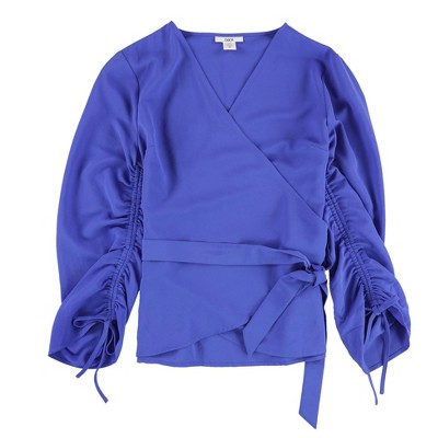 bar III Womens Ruched Wrap Knit Blouse
