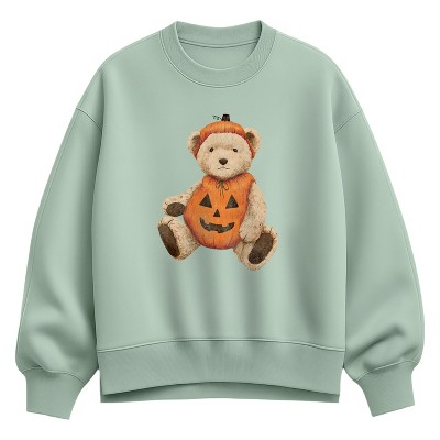 Women's - Instant Message - Pumpkin Teddy Bear Oversized Fleece Crew Sweatshirt