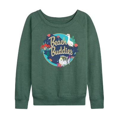 Women's - Disney - Beach Buddies Lightweight French Terry Wide Neck Long Sleeve Graphic Shirt