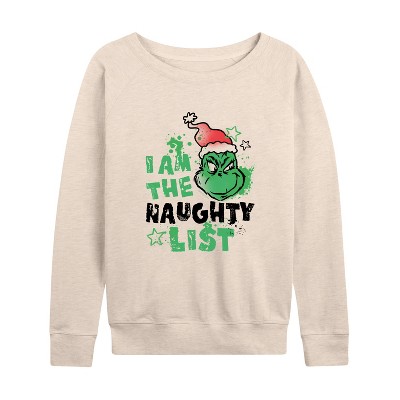 Women's - The Grinch - Lightweight French Terry Wide Neck Long Sleeve Graphic Shirt