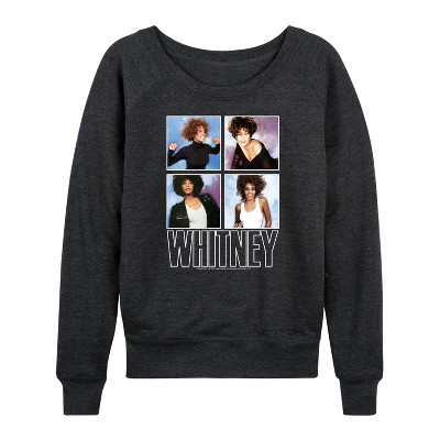 Women's - Whitney Houston - Lightweight French Terry Wide Neck Long Sleeve Graphic Shirt
