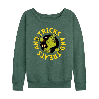 Women's - The Grinch - Lightweight French Terry Wide Neck Long Sleeve Graphic Shirt