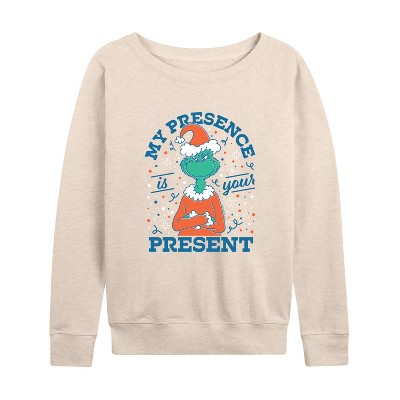 Women's - The Grinch - Lightweight French Terry Wide Neck Long Sleeve Graphic Shirt
