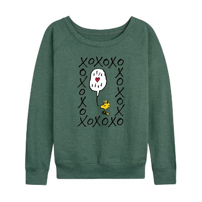 Women's - Peanuts - Woodstock Xoxo Lightweight French Terry Wide Neck Long Sleeve Graphic Shirt