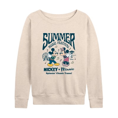 Women's - Disney - Mickey & Friends Lightweight French Terry Wide Neck Long Sleeve Graphic Shirt