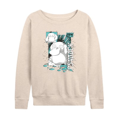 Women's - Pokémon - Psyduck Anime Lightweight French Terry Wide Neck Long Sleeve Graphic Shirt