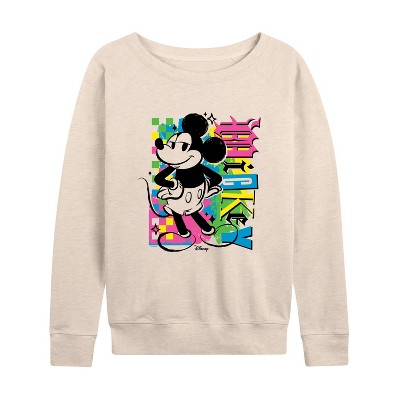 Women's - Disney - Mickey Punk Lightweight French Terry Wide Neck Long Sleeve Graphic Shirt
