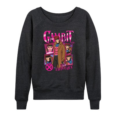 Women's - X-Men - Gambit Lightweight French Terry Wide Neck Long Sleeve Graphic Shirt