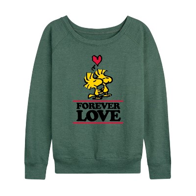 Women's - Peanuts - Forever Love Lightweight French Terry Wide Neck Long Sleeve Graphic Shirt