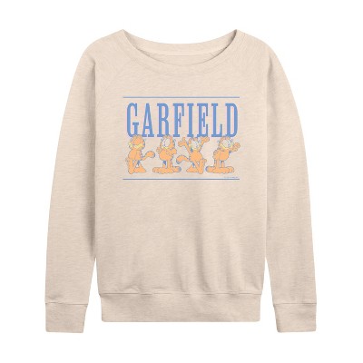 Women's - Garfield - Garf Lineup Lightweight French Terry Wide Neck Long Sleeve Graphic Shirt