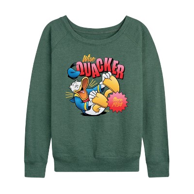 Women's - Disney - Wise Quacker Lightweight French Terry Wide Neck Long Sleeve Graphic Shirt