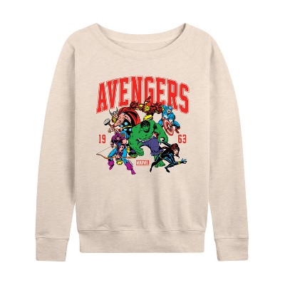Women's - Marvel - Avengers Collegiate Lightweight French Terry Wide Neck Long Sleeve Graphic Shirt