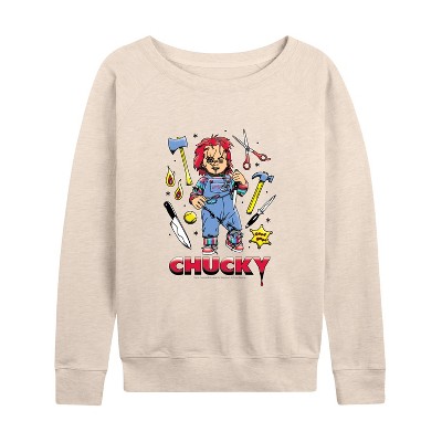 Women's - Chucky - Movie Icons Lightweight French Terry Wide Neck Long Sleeve Graphic Shirt