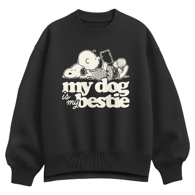 Women's - Peanuts - Lucy Charlie Winter Stamp Oversized Fleece Crew Sweatshirt