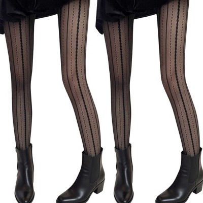 Anna-Kaci 2pcs Women's Sheer Full Length Tights with Diamond Mesh Pattern and Soft Stretch Fit for Stylish Textured Feminine Legwear