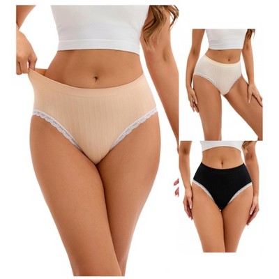 INSPIRE CHIC Women's High Waist Tummy Control Comfortable Lace Trim Ribbed Briefs 10 Packs