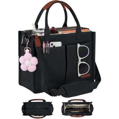 Narwey Women Laptop Tote Bag with Insulated Lunch Compartment, 17-17.3 Inch PU Leather Work Bag Water-resistant