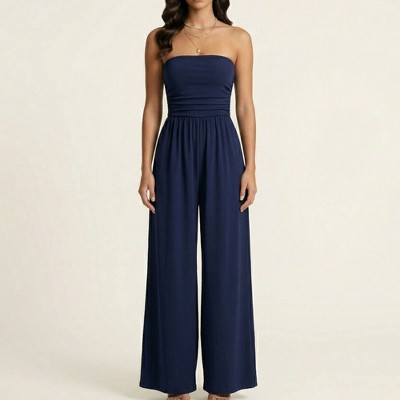 Anna-Kaci Women's Strapless Wide Leg Jumpsuit with Smocked Bodice Elastic Waist Flowy Relaxed Fit