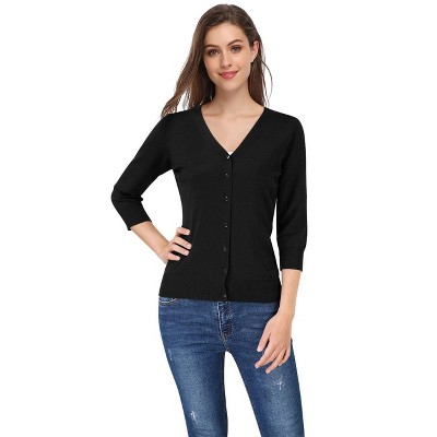 Coolmee Women's 3/4 Sleeve Knit Cardigan Sweater V-Neck Basic Classic Casual Button Down Lightweight Top