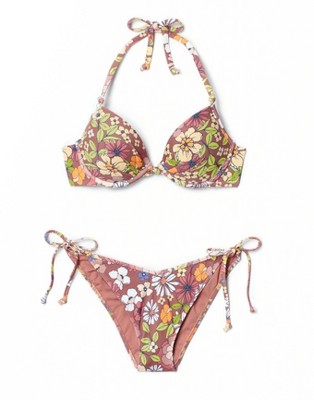 Women's Floral Pattern Push Up Bikini Swimsuit Top Bra Sizing - LASCANA