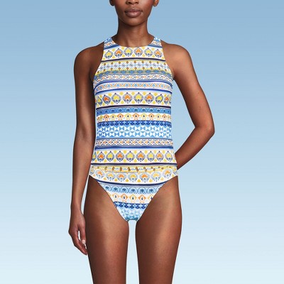 Lands' End Women's D-Cup Tugless High Neck Strappy Back Tankini Swimsuit Top