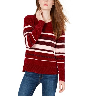 I.N.C International Concepts Womens Metallic Stripe Pullover Sweater, mediumred, Medium