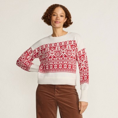 Lands' End Women's Cotton Blend Pointelle Crew Neck Sweater