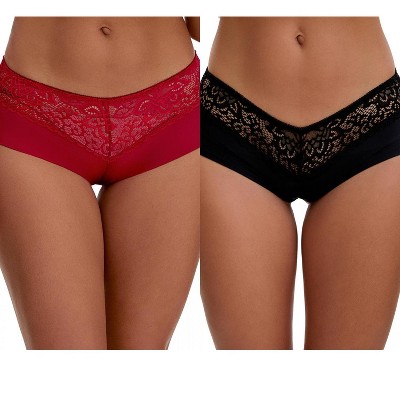 INSPIRE CHIC Women's Lace Ice Silk Hollow Out Mid Rise Comfort Boyshorts Briefs 2 Packs