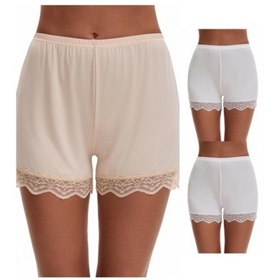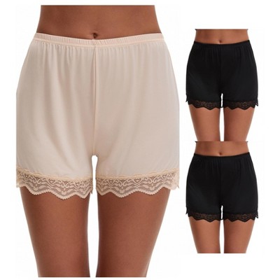 INSPIRE CHIC 3 Packs Women's Lace Trim Ice Silk Mid-Waisted Loose Slip Shorts Light and Breathable Boyshorts
