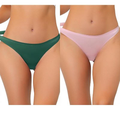 Allegra K Women's Unlined Satin Invisible Bikini Comfortable No-Show Thongs 2 Packs