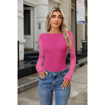 Avidlove Women Long Sleeve Bodysuit Crew Neck Body Suits Mesh One Piece Leotards Shirt Going Out Bodysuit Tops