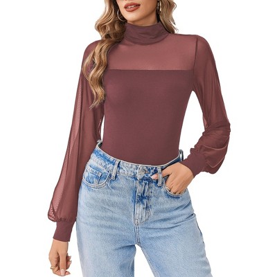 Avidlove Long Sleeve Body Suits Womens Mesh Turtleneck Bodysuit Thong Dressy Going Out Bodysuits Top Fall Outfits