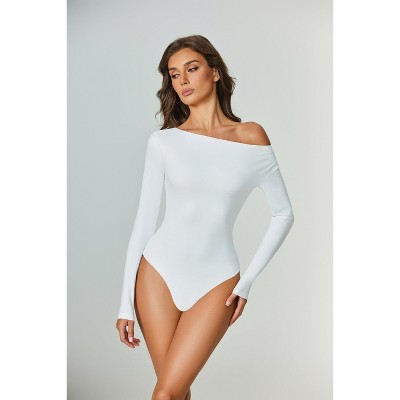 Avidlove Women Off the Shoulder Long Sleeve Bodysuit Double Lined Thong Body Suits Tops Soft Outfits