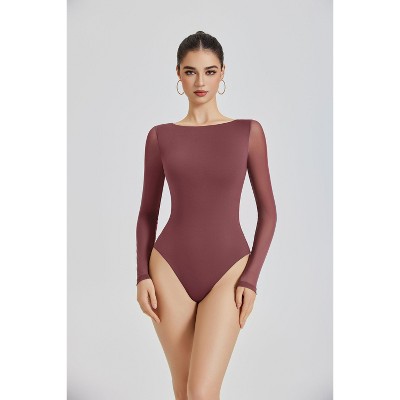 Avidlove Women Long Sleeve Body Suits Mesh Boat Neck Shapewear Bodysuit Crew Neck Leotards Going Out Tops Fall Outfits