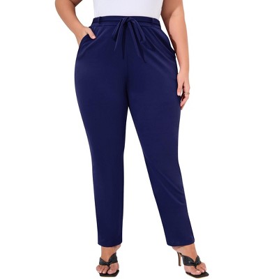 Women's High-Waisted Wide Leg Pants - Dress Pants with Decorative Button for Office & Casual Wear