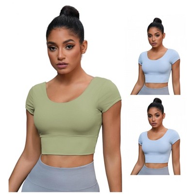 INSPIRE CHIC 3 Packs Women's U Neck Short Sleeve Deep V Back Shapewear Workout Tank Tops with Bulit in Bra