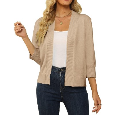 Women's 3/4 Sleeve Cropped Cardigan Sweater Open Front Short Shrugs Cardigans Lightweight Sweaters,Camel - M