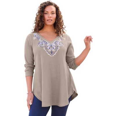 Roaman's Plus Size Knit Thermal V Neck Swing Tunic – Long Sleeve