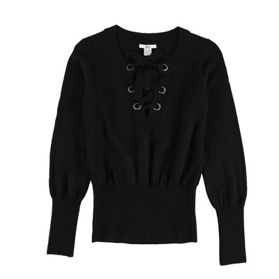 bar III Womens Ribbed Lace-Up Knit Sweater
