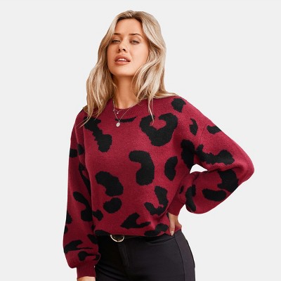 Women's Leopard Print Drop Sleeve Sweater - Cupshe