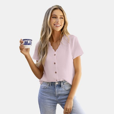 Women's Scalloped V-Neck Blouse Shirt -Cupshe