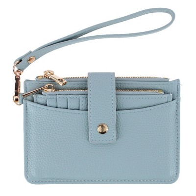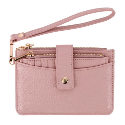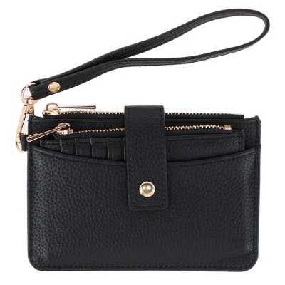 CTM Women's Premium Faux Leather Solid Color Card Case Wristlet