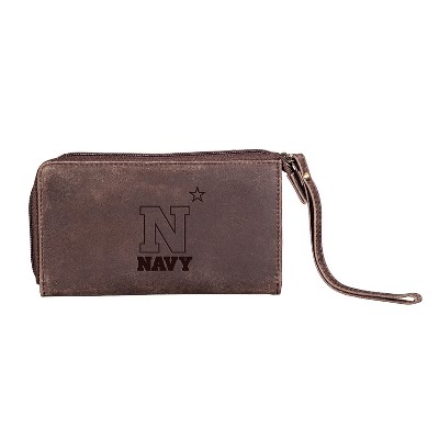 Evergreen NCAA Navy Midshipmen Brown Leather Women's Wristlet Wallet Officially Licensed with Gift Box